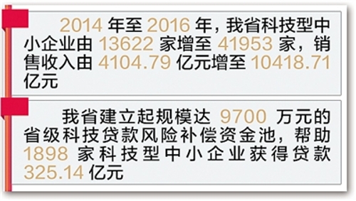 真金白銀的激勵政策進一步點燃科技型中小企業的創新激情。2014年至2016年,全省科技型中小企業研發費用年均增速達74.45%,高于年度銷售收入增速近15個百分點,擁有發明專利的均值是全省企業均值的近10倍,成為企業創新的“生力軍”。
