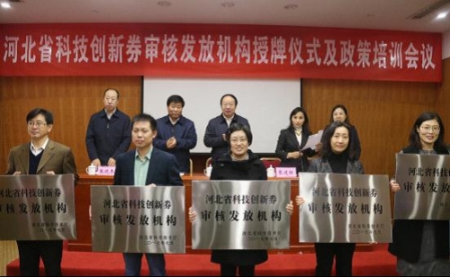 為進一步做好我省科技創新券審核發放工作,10月27日,省科技廳在石家莊組織召開科技創新券審核發放培訓會議,省直有關單位、各市科技局、高新區及創新券審核發放機構相關負責同志約70人參加了會議。省科技廳副廳長郭玉明出席會議并為13家科技創新券審核發放機構授牌。