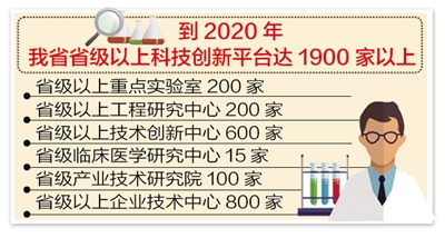 加速補(bǔ)齊基礎(chǔ)創(chuàng)新短板,方案提出,到2020年,我省省級(jí)以上科技創(chuàng)新平臺(tái)達(dá)1900家以上,其中省級(jí)以上重點(diǎn)實(shí)驗(yàn)室200家、省級(jí)以上工程研究中心200家、省級(jí)以上技術(shù)創(chuàng)新中心600家、省級(jí)臨床醫(yī)學(xué)研究中心15家、省級(jí)產(chǎn)業(yè)技術(shù)研究院100家、省級(jí)以上企業(yè)技術(shù)中心800家。