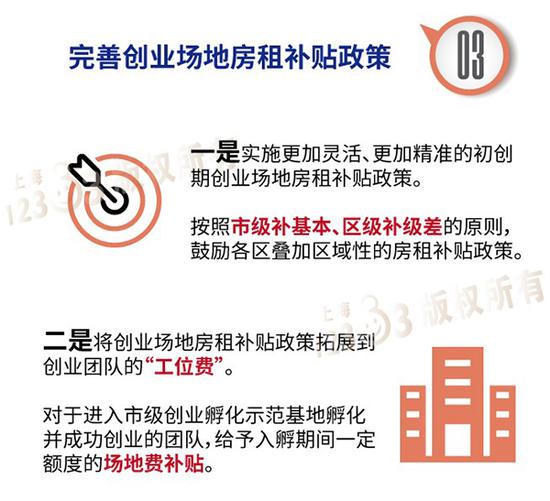 第三是完善創業場地房租補貼政策。一是實施更加靈活、更加精準的初創期創業場地房租補貼政策,按照市級補基本、區級補級差的原則,鼓勵各區疊加區域性的房租補貼政策。二是將創業場地房租補貼政策拓展到創業團隊的“工位費”,對于進入市級創業孵化示范基地孵化并成功創業的團隊,給予入孵期間一定額度的場地費補貼。