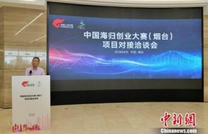 圖為2018(第四屆)中國海歸創業大賽(煙臺)項目對接洽談會啟動儀式,中國技術創業協會留學人員創業園聯盟副理事長兼秘書長郎靖致辭 周欣嬡 攝 第四屆中國海歸創業大賽落幕 助力海歸人