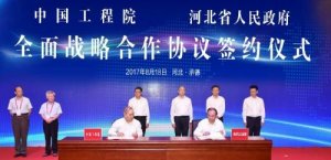 2017年8月18日上午,中國工程院與河北省人民政府在河北省承德市舉行了全面戰略合作簽約儀式。中國工程院黨組書記李曉紅、河北省省委副書記、省長許勤、中國工程院副院長劉旭、河北省人