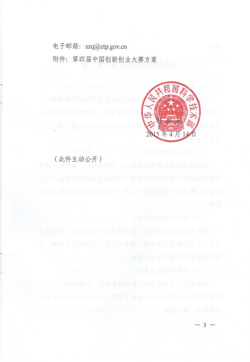 科技部關(guān)于舉辦第四屆中國(guó)創(chuàng)新創(chuàng)業(yè)大賽的通知