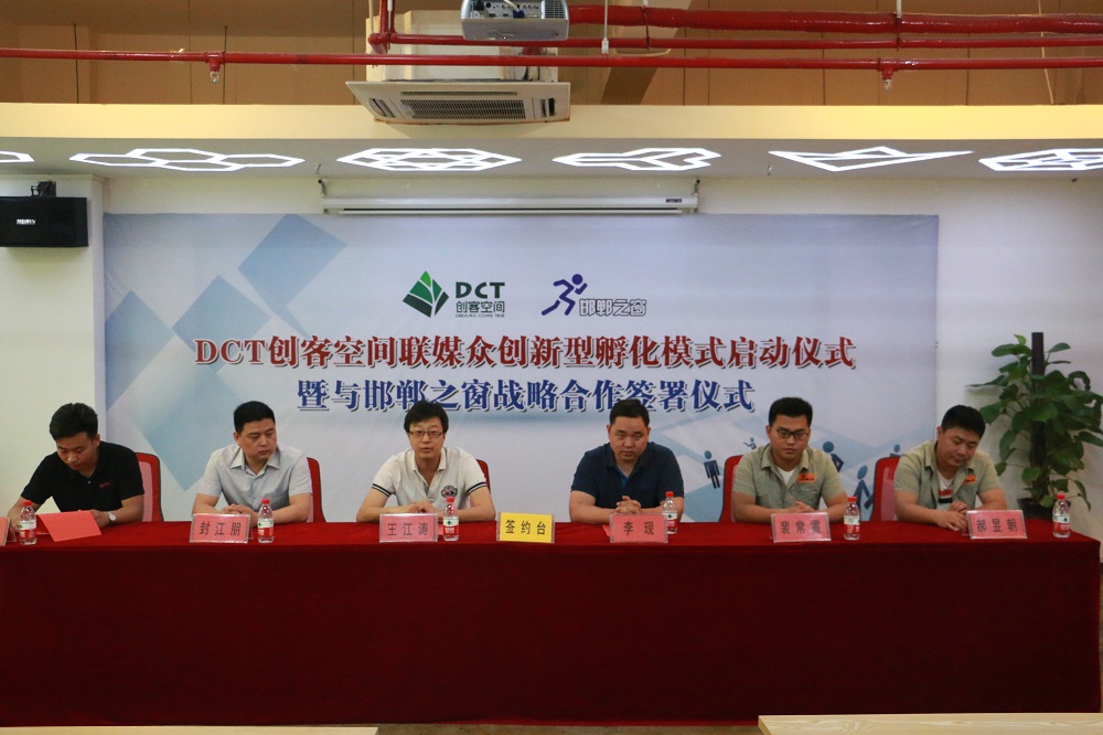 DCT創(chuàng)客空間的新型孵化模式“六聯(lián)創(chuàng)”,即聯(lián)合眾創(chuàng)新型孵化模式,包括聯(lián)媒眾創(chuàng)、聯(lián)眾眾創(chuàng)、聯(lián)融眾創(chuàng)、聯(lián)企眾創(chuàng)、聯(lián)校眾創(chuàng)、聯(lián)研眾創(chuàng)。與邯鄲之窗合作標(biāo)志著邯鄲高科DCT創(chuàng)客空間聯(lián)媒眾創(chuàng)正式啟動(dòng),也將有效促進(jìn)DCT創(chuàng)客空間“六聯(lián)創(chuàng)”的發(fā)展。